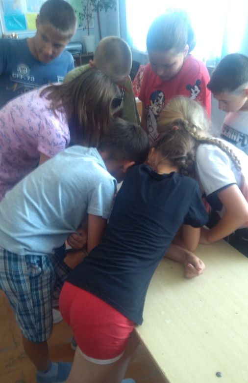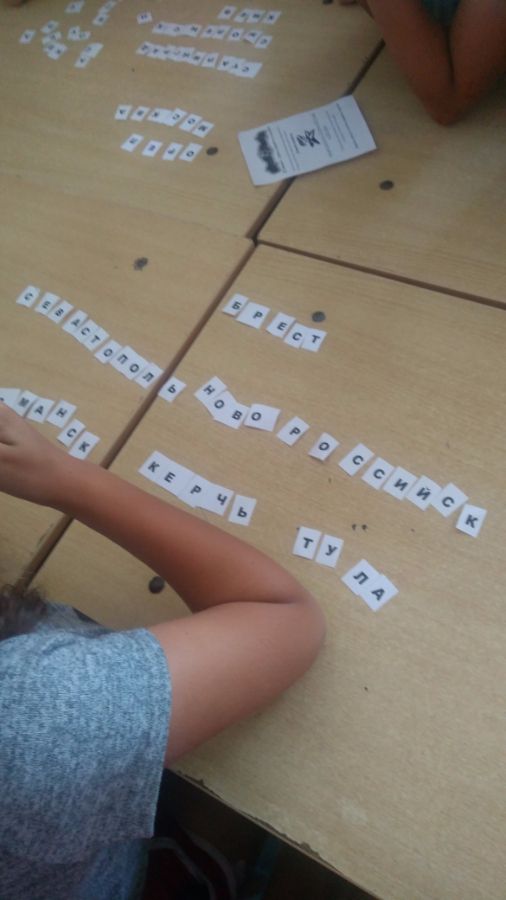 Первое задание "Политподготовка" (ответить на 5 вопросов), затем "Города - герои" (Из букв собрать названия городов – героев), "Разведчики" (Работа с картой, посмотреть 2 минуты на карту, запомнить расположение стратегических объектов и по памяти воспроизвести на бумаге, применяя условные обозначения); Написать Виды Вооруженных сил, рода войск, воинские звания; Строевая подготовка (Промаршировать от пункта А до Пункта В с песней «Катюша»). Заключительным этапом игры было задание "Расшифровать фразу":