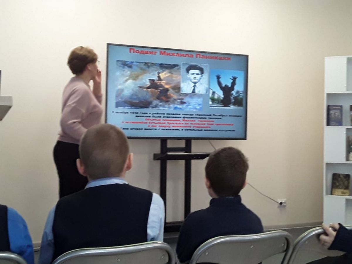 Морской пехотинец Михаил Паникаха был не просто ранен - пуля попала в бутылку с зажигательной смесью, которую он держал в руках, и боец превратился в горящий факел. Но у него хватило сил на последний подвиг: добравшись до фашистского танка, он поджег и уничтожил вражескую машину. Его Подвиг описан в рассказе Сергея Алексеева "Данко". Участникам встречи демонстрировалась слайд-презентация с фотографиями героев, установленных им памятников, виртуальная экскурсия на "Мамаев курган", в битве за который каждый квадратный метр пробит осколками мин и снарядов.