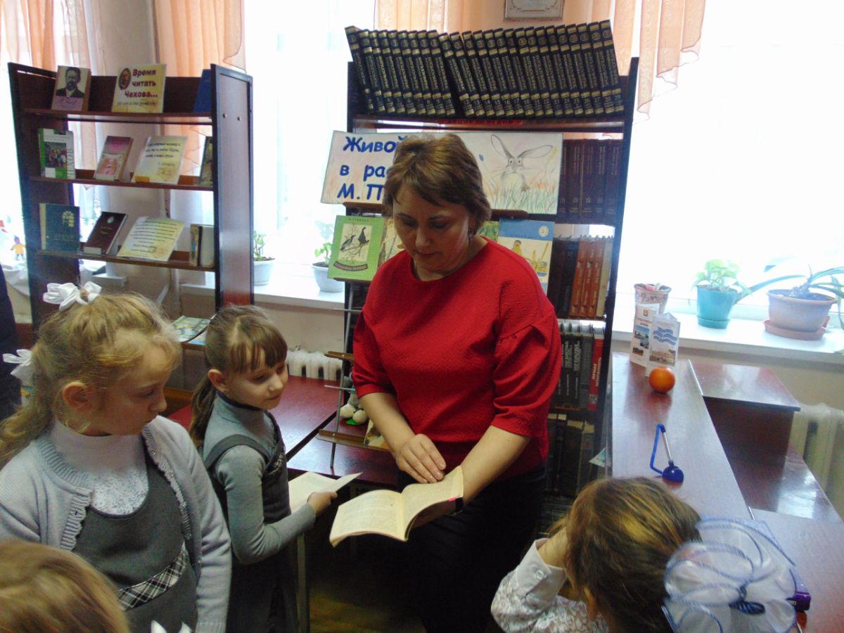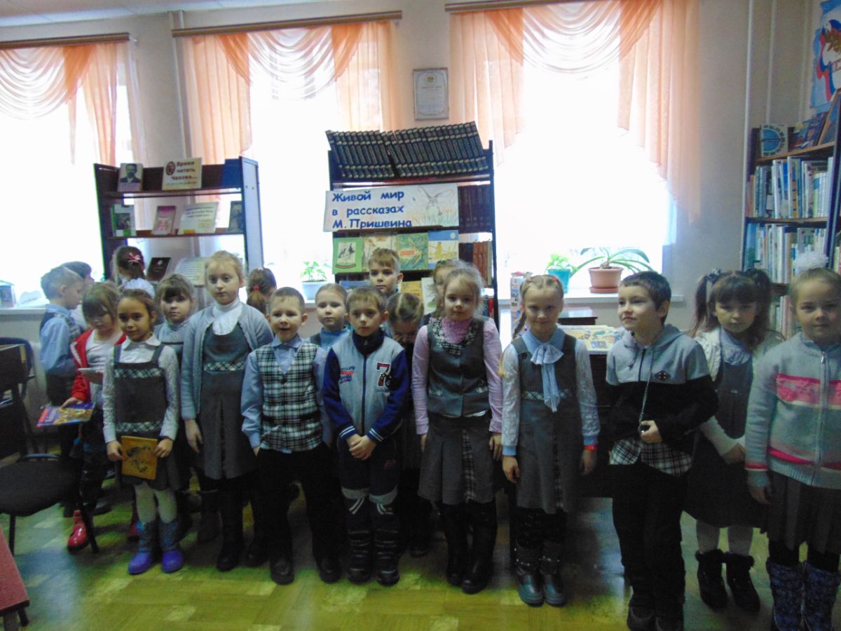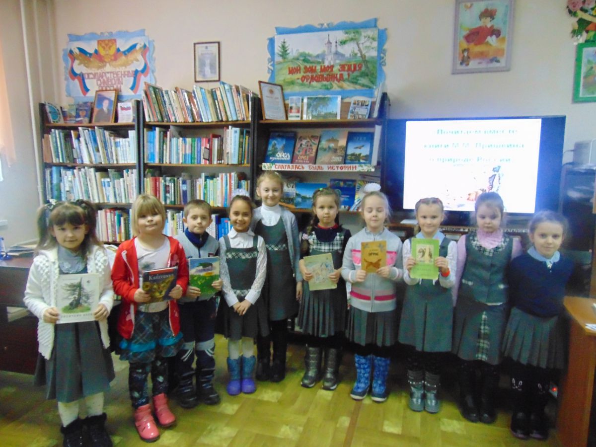 Проведение Акции по продвижению творчества Михаила Пришвина «Почитаем вместе книги М. М. Пришвина о природе России» предложила "Орловская детская библиотека им. М. М. Пришвина" в 2017 году. Дата проведения акции приурочена ко дню рождения Михаила Михайловича Пришвина (4 февраля 1873 г.). Наша библиотека в третий раз принимала участие в проведении Акции. На литературный час "Я иду по лесу..." пришли уч-ся 1 класса ЗСШ. Классный руководитель Ирина Петровна Першичкина.