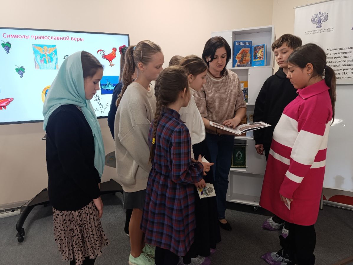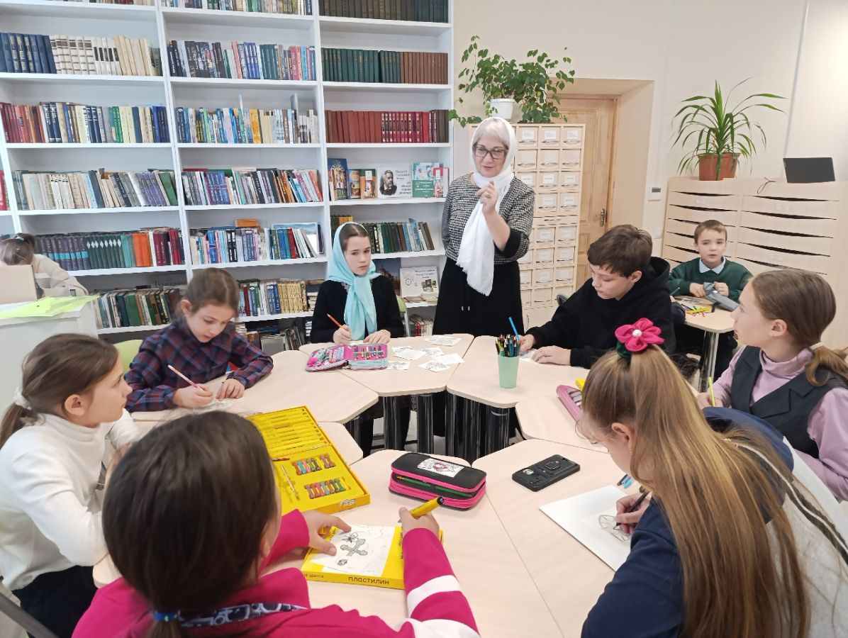 16 ноября Центральная детская библиотека имени Е. А. Благининой в очередной раз гостеприимно распахнула свои двери для воспитанников воскресной школы при Храме Вознесения Господня с их преподавателем Татьяной Владимировной Матюхиной. Сотрудничество библиотеки и воскресной школы стало уже доброй традицией, и каждый такой урок – это уникальное сочетание духовного просвещения и знакомства с богатым миром литературы.